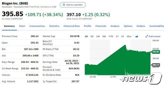 (뉴욕=연합인포맥스) 곽세연 특파원 = 미국 식품의약청(fda)이 바이오젠의 알츠하이머 약품 승인을 뒷받침할 만한 충분한 자료가 있다고 밝힌 영향으로 바이오젠 주가가 30% 급등하고 있다. (해외기사 제목번역) fda, 바이오젠 알츠하이머 치료제 아두카누맙 승인 (1). ◇바이오젠 항체 치료제도 3월 fda 승인 기대. #바이오젠 #아두카누맙 #biib미국 바이오텍인 바이오젠(biib)의 알츠하이머성 치매 신약 후보 물질인'아두카누맙' 이슈에 대해 살펴보고. 인도 코로나19 확산…글로벌 제약산업 공급 타격 우려.